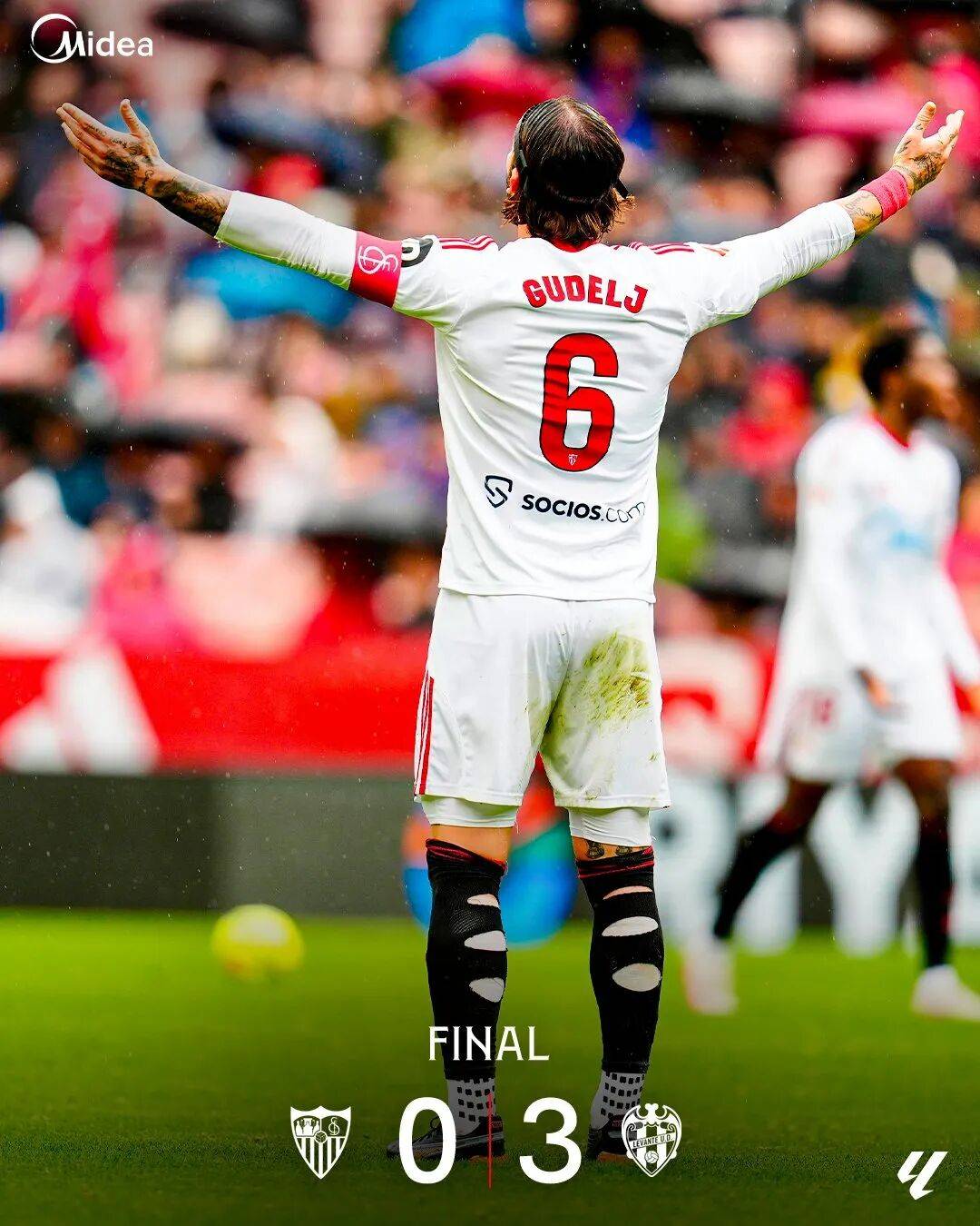 塞维利亚上轮西甲主场0-3惨败给莱万特遭遇两连败,莱万特来到安达卢西亚之前已经在新主帅路易斯卡斯特罗的带领下逼平了皇家社会。莱万特在比赛中专心防守反击,上半场伤停补时伊万罗梅罗助攻罗萨达首开纪录,伊万罗梅罗2023年夏天从塞维利亚转会莱万特。下半场莫拉莱斯脚后跟助攻Carlos Espi打入第二球,塞维利亚一度获得点球,但伊萨克罗梅罗主罚的点球被莱万特的澳大利亚门将Mathew Ryan神勇挡出,失去扳平比分机会的塞维利亚彻底崩溃,阿尔瓦雷斯反击中打入第三球,讽刺的是阿尔瓦雷斯也是2023年从塞维利亚加盟的莱万特。塞维利亚输球后只领先倒数第三的巴伦西亚三分。